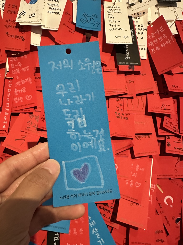 우리는 특별한 체험전에 참여한 것은 아니지만 독립의 의미를 되새기며 소원을 적어보는 것도 재미있었다.