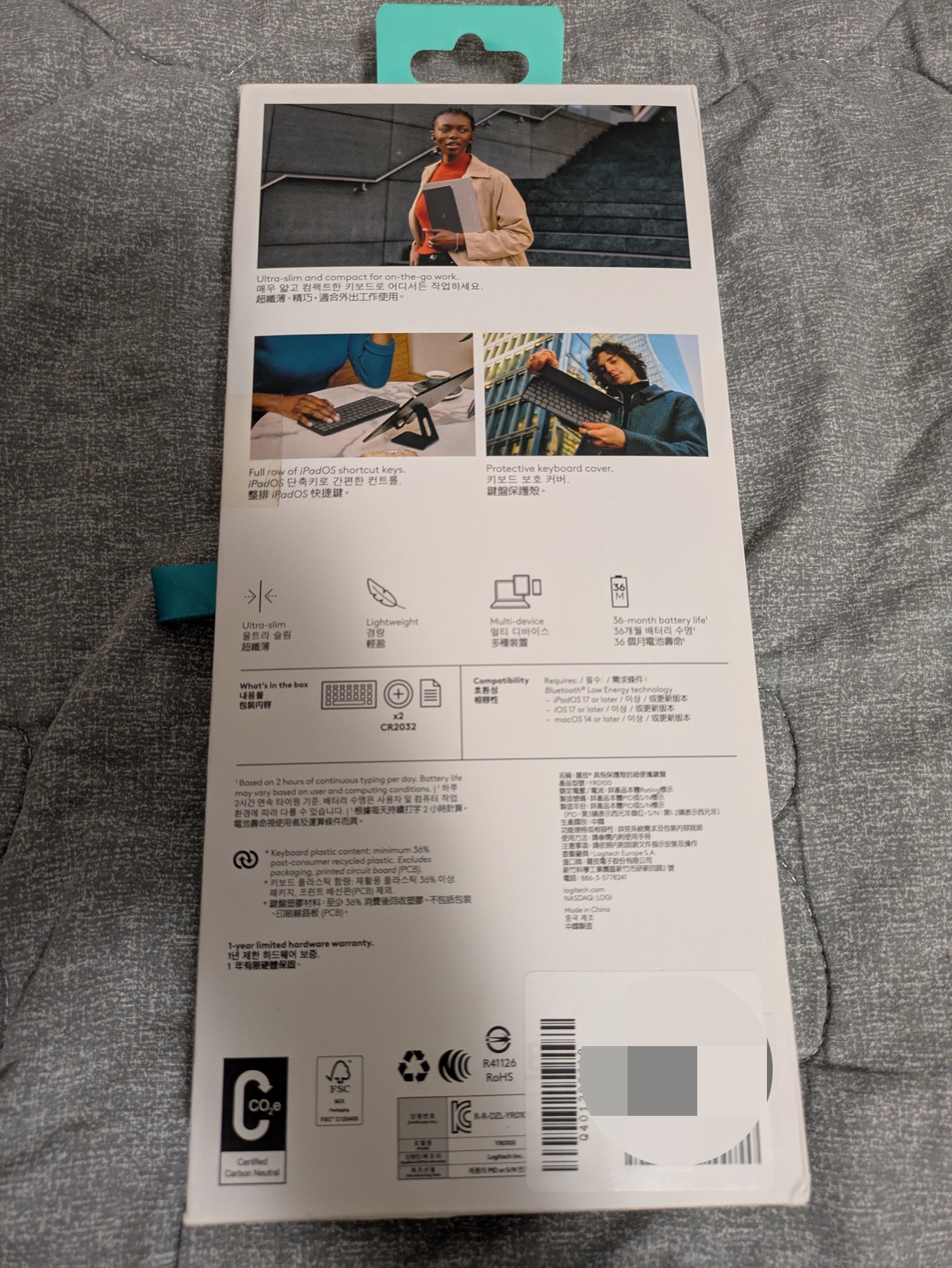뭐, 제품에 문제가 없다면 중고야 요즘엔 전혀 상관이 없으니까. 박스가 찌그러져 있고 개봉된 테이핑 흔적도 있었지만 괜찮았다. 그간 매직 키보드도 써보고 스마트 폴리오 키보드고 써봤는데, 두 제품 모두 애플에서 직접 판매하는 제품이니 키감이야 나무랄 데가 없지만, 가격이 모든걸 다 파괴..한다.