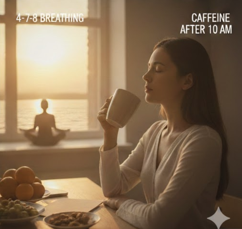 일어나자마자 미온수를 마셔 혈액 순환을 돕고, 바나나 한 개나 견과류 한 줌이라도 섭취하여 저혈당으로 인한 불안 반응을 차단해야 한다. 신체가 물리적으로 안정되면 뇌도 덩달아 진정된다.