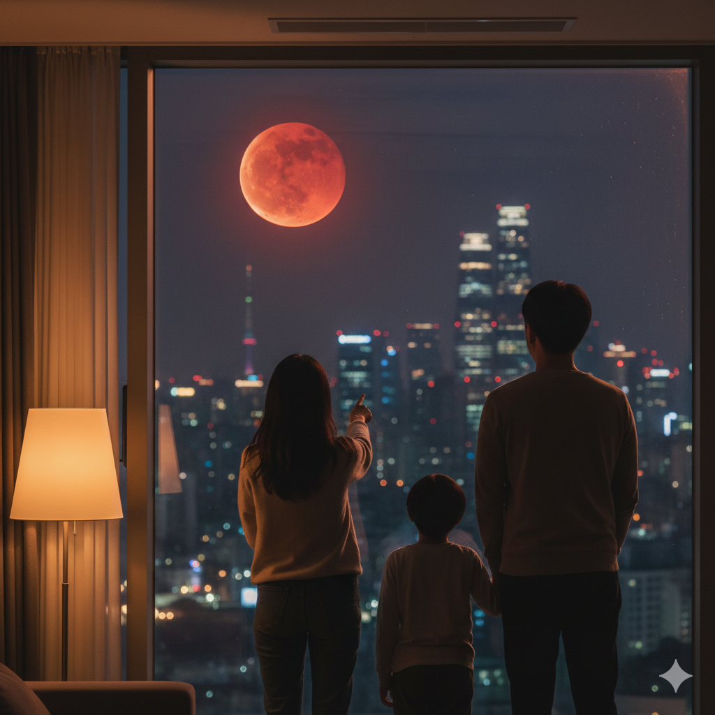 - 진행 과정: 저녁 무렵부터 달의 일부분이 가려지기 시작하여, 밤 8시 전후로 달이 완전히 붉게 변하는 개기식 상태가 절정에 달한다.
