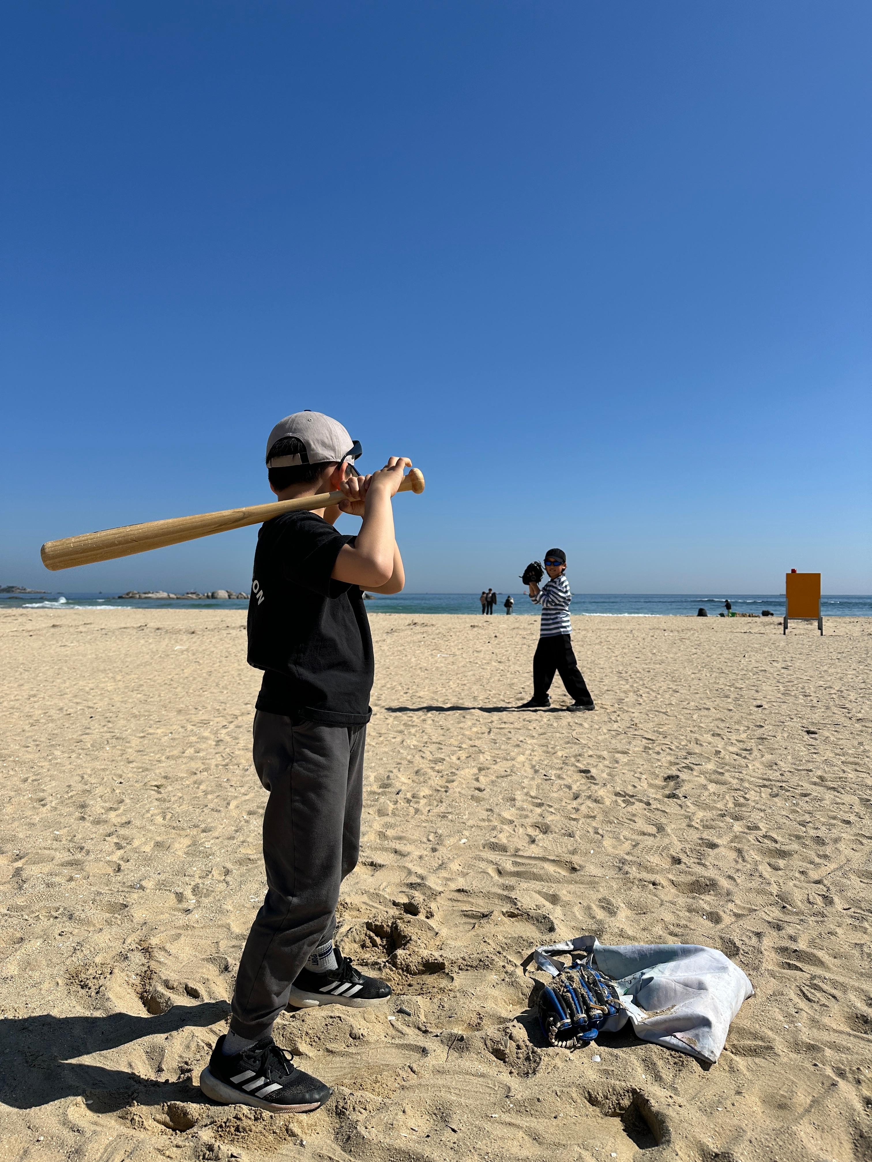 - 바닷바람(해풍)의 변수: 바닷가에서는 바람이 불규칙하게 분다. 평소보다 공의 궤적이 크게 변할 수 있으므로, 아이들이 공에 맞지 않도록 아빠가 먼저 바람의 방향을 읽고 공을 던져줘야 한다.